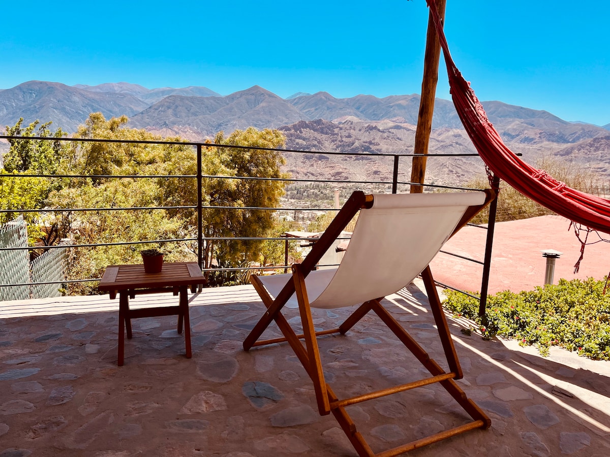 Casita ubicada a 700 metros del centro de Tilcara, ideal para 2 personas, tanto para viaje de vacaciones como para espacio de trabajo. Espacio máximo para 3 personas. Dos habitaciones, living comedor, cocina equipada y completa y dos patios con vistas a Tilcara, el Río Grande y los cerros como telón de fondo.