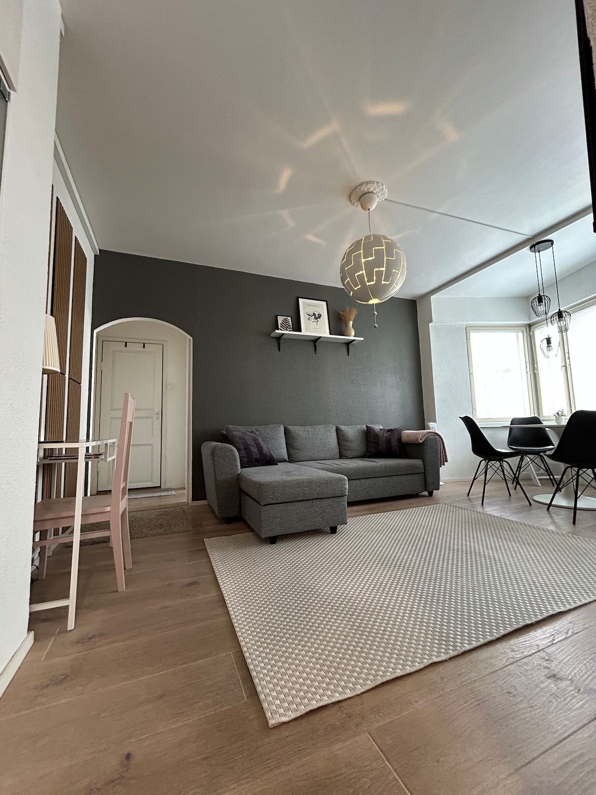 Stylish and spacious apartment at the most central location in Turku; by the market squire, with restaurants, shops, museums and bus stops just at your doorstep. Also the river is just a block away. Well equipped, design details, fully renovated in 2023! We offer a double bed (160x200 cm) in the bedroom, and a sofa bed (90x180 cm) and thick additional travel bed upon request..