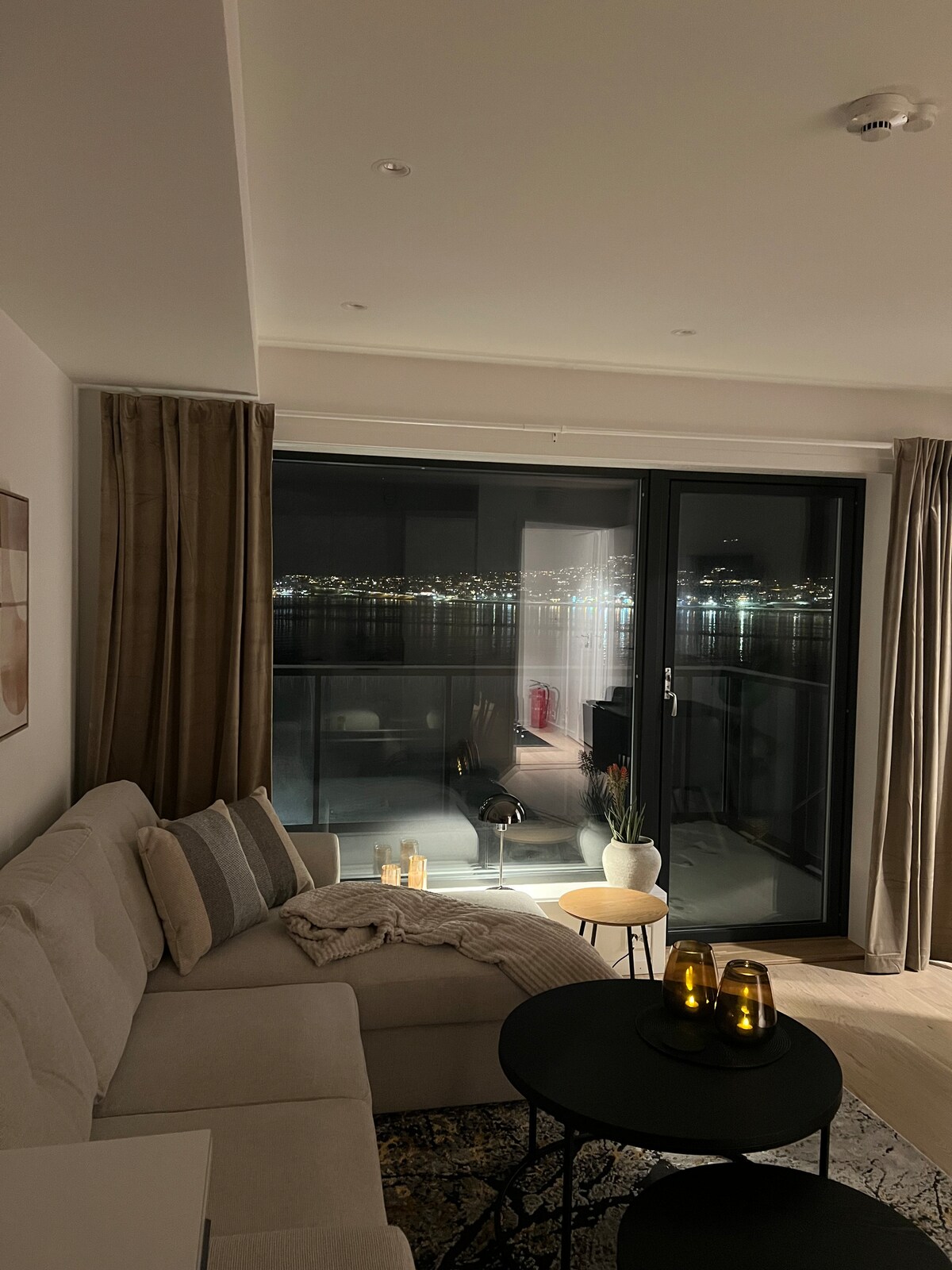 Stylish top-floor apartment by the sea in central Tromsø with an impressive view of the Arctic Cathedral, Tromsø Bridge, Cable car, midnight sun and the Northern Lights. Enjoy Hurtigruta sailing in from the sofacorner and hear waves lapping outside. The entrance is part of a glazed terrace with views to the south. The center is a 10-minute walk away. The apartment is open, inviting, and a nice & comfortable place to spend your time. Age limit to rent: minimum 25 years. NO SMOKING OF ANY KIND.