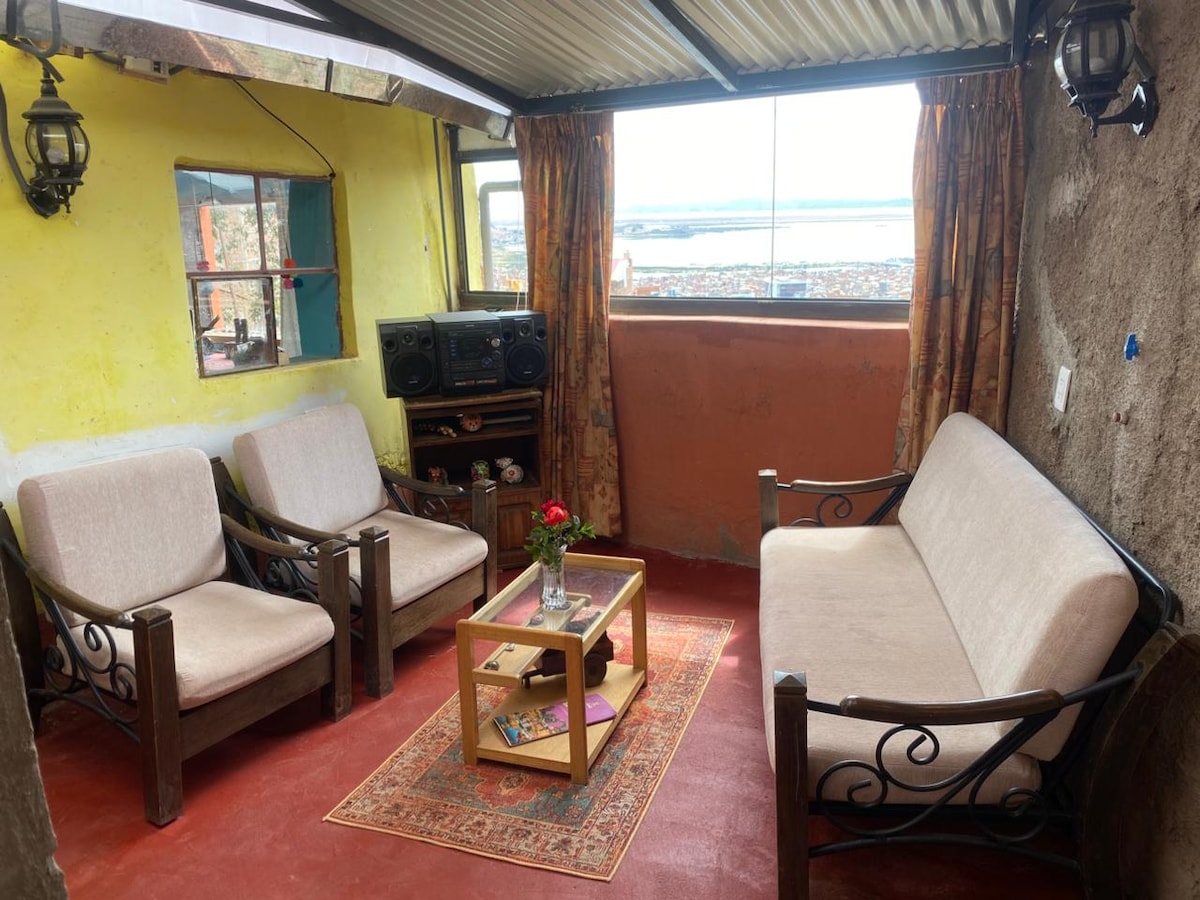 We are located in a safe area 4 minutes away to downtown of Puno (by taxi), with an extraordinary view of the city and the sacred lake of the Incas. All rooms have fine finishes and are made for all types of travelers. The terrace has an amazing view of the highlands, join city, sky and lake in a single image. Ideal for nature lovers. you'll feel in home away from home. Our experience in tourism will make your stay unforgettable.