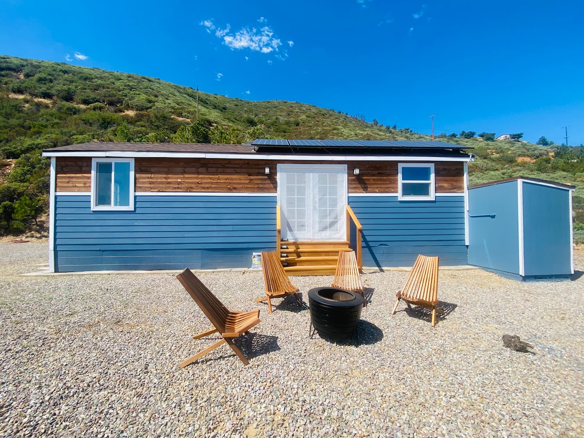 *no cleaning fees* Brand new tiny house with wooden pergola and a warm firepit, suitable for two adults. Spend the day hiking at Julian and come home to your private mountain area experience. The property sits on the residential area of Julian, only 4 minutes away from historic Julian. Enjoy the secret and most beautiful view of Chariot Canyon within a 5 minute walk. We welcome pets, but there is an additional 25 dollar pet fee due at the time of booking