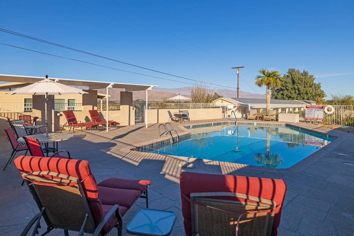 Come visit our small authentic desert motel with large and refreshing seasonal swimming pool. Walk to restaurants and shopping in "downtown" Borrego Springs . Visit Anza Borrego State Park (the largest state park in the United States) and view the starry night sky from our patios and pool deck. Borrego Springs is a recognized International Dark Sky Community and our motel is solar powered and eco-friendly! Enjoy the desert air, listen to the birds chirp and the coyotes howl!