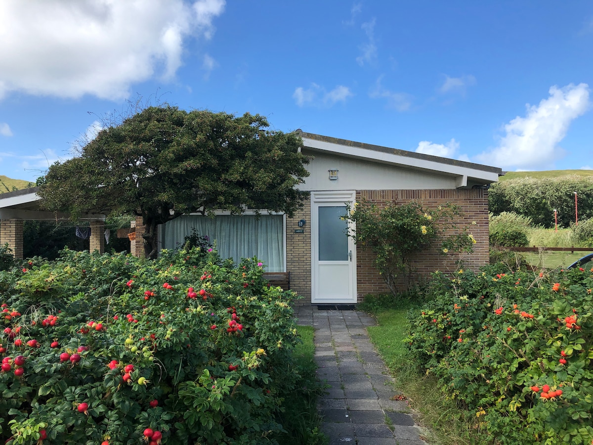 <B>EEN HEERLIJK VAKANTIEHUISJE OP DE PERFECTE LOCATIE! </B> <B>Op 100 meter van het strand en het centrum </B> en met uitzicht op de duinen vindt u dit heerlijke huisje.<BR> Waar u met uw gezin tot 4 personen kunt genieten van een heerlijk comfortabel verblijf. De sfeervolle inrichting het zonnige terras met uitzicht op de duinen en de heerlijke veranda maken het tot een super plek waar u <B> geniet van zon, zee en strand.</b>