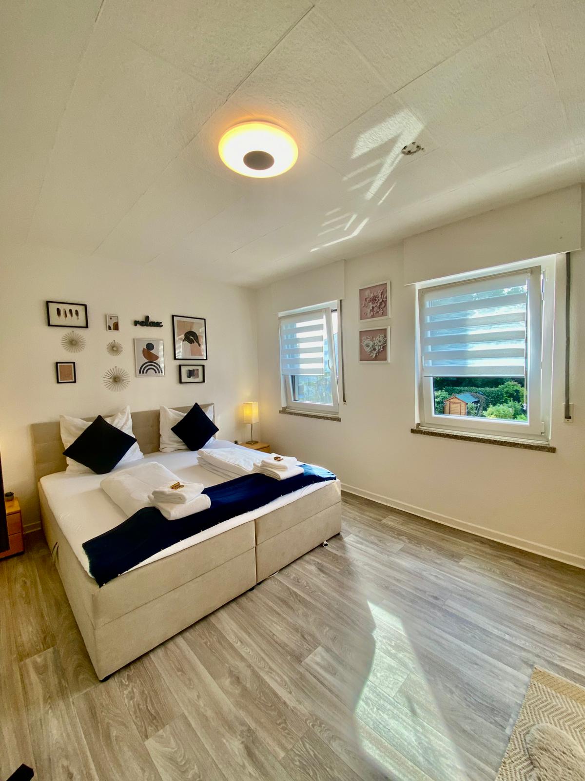 Genieße Jülich in einem frisch renovierten Apartment mit fantastischem Blick auf eine ruhige und grüne Nachbarschaft! Willkommen in diesem luxuriösen 100 qm Apartment, das alles bietet, was du für einen tollen Aufenthalt in Jülich brauchst: → 2 Komfortable Boxspringbetten (King- & Queensize) → Smart-TV mit Zugang zu Netflix → NESPRESSO Kaffeemaschine → Voll ausgestattete Küche → Balkon mit atemberaubender Aussicht → In kurzer Entfernung zum Stadtzentrum und dem Bahnhof