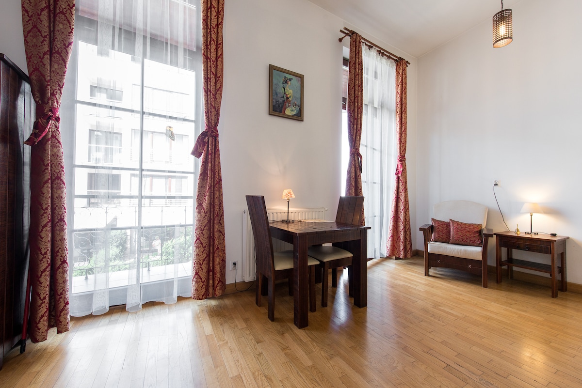 A cozy, renovated apartment located in a beautifully restored 19th-century building in the very heart of Kraków. Just 50 meters from Floriańska Street and only a 2-minute walk to the Main Market Square — you’ll be surrounded by charming cafés, restaurants, historic landmarks and the city’s lively atmosphere, yet the apartment itself remains a comfortable place to relax after sightseeing. Air-conditioned apartment