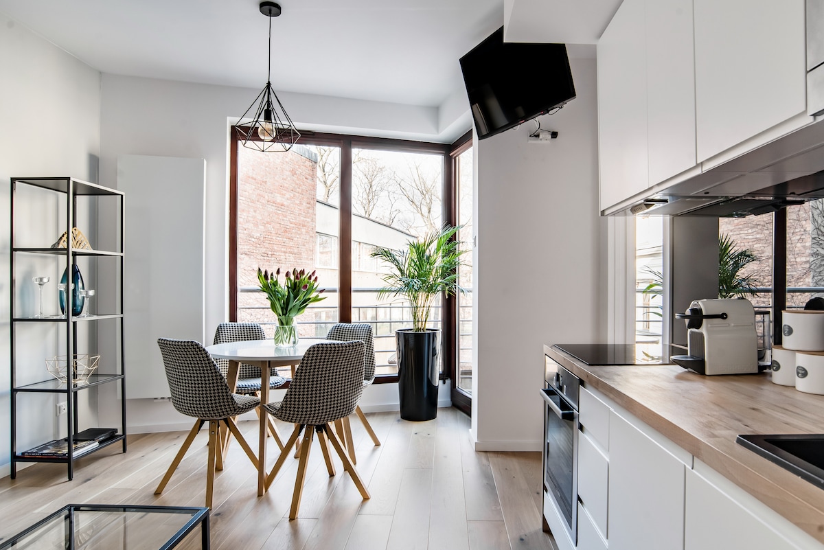 A luxurious stay awaits You in this unique 2 room designer loft in stylish black´n white finish! Discover Krakow in the middle of it all instead of just there! From here You can reach every attraction in just a few minutes, even by foot. All restaurants, shops, bars, taxi/tram, ATM etc... in even less than 1 minute! In the loft You will find a coffee machine, mixer, microwave, washing machine, dishwasher, Netflix, European queen size bed, Wi-Fi, sofa bed, etc...