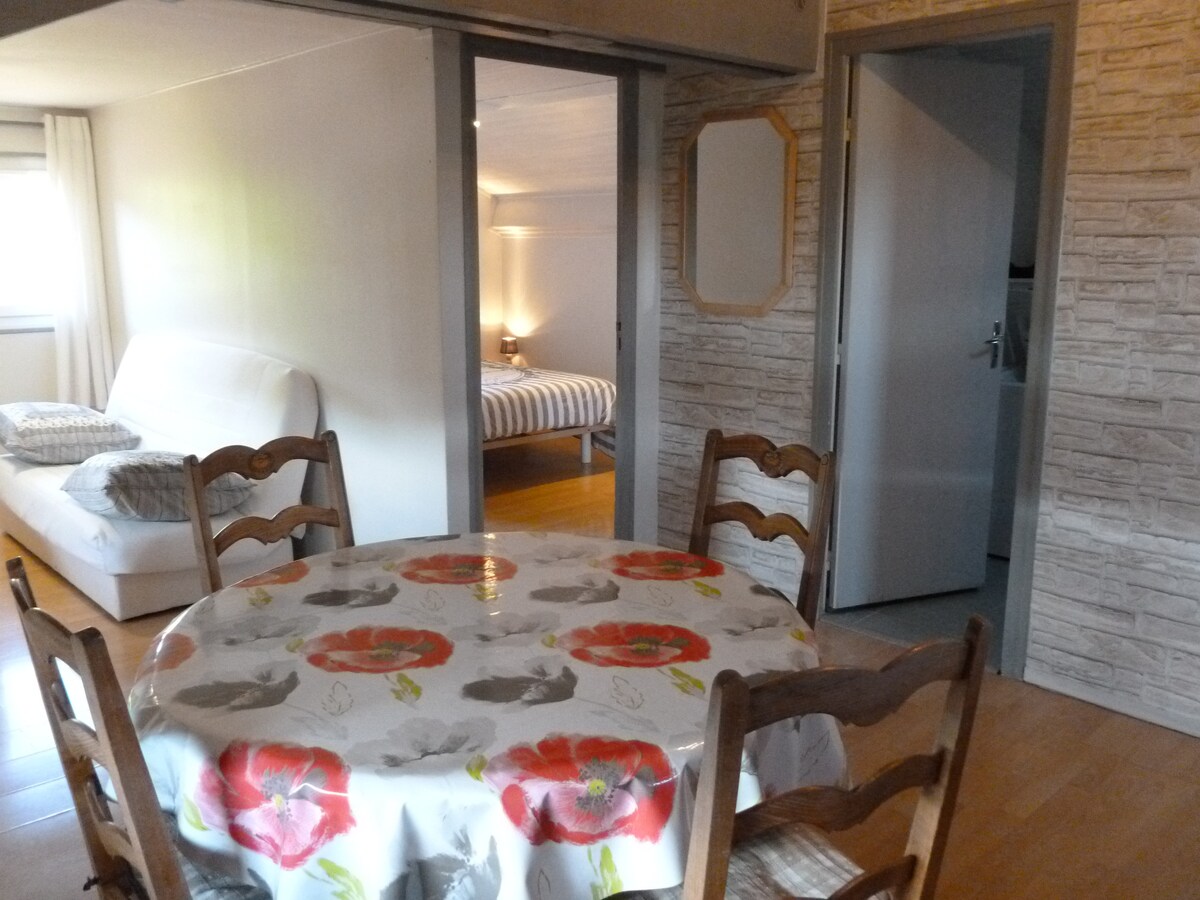 Le Cottage Mâconnais est idéal pour votre séjour entre ville et campagne. A 1h40 de Paris en TGV, à 50' de Lyon, nous vous accueillons dans un écrin de verdure avec terrasse et parking privatifs. La piscine non chauffée accessible de mai à septembre est commune avec les propriétaires Le logement de 27m² dispose : Séjour avec cuisine, coin repas et canapé convertible 140x190cm Chambre lit queen size 160x200cm avec clim Salle d'eau WC séparés Linge de maison fourni (draps, serviettes, torchons)