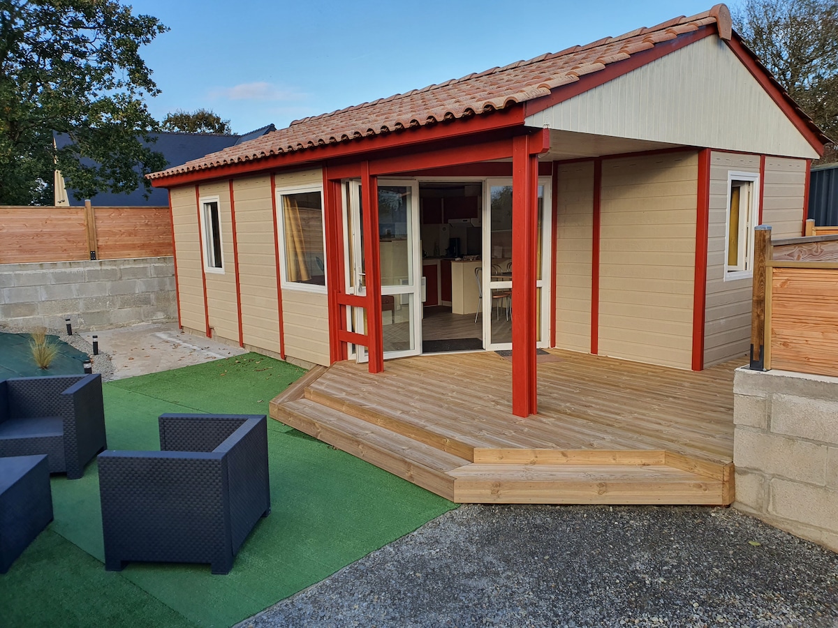 Ce chalet climatisé de 76 m2 vous permettra de vous réunir à 4, soit entre amis, soit en famille. Muni de 2 suites parentales, votre intimité sera garantie. L'extérieur vous permettra de vous détendre . Et, si un besoin d'activités se fait sentir, vous pourrez accéder, gratuitement, à toutes celles proposées au camping 5* Vagues Océanes. La plage de Bréal se situe à 10mn du camping, le Mont Saint Michel à 1 heure, et d'autres sites touristiques sauront vous faire apprécier la Normandie.