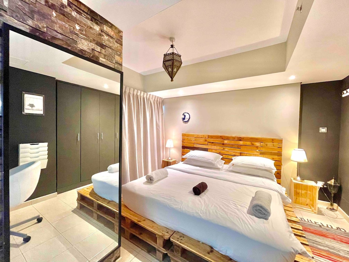 Inspired by the Arabic poem "Until the Stars Burn Out" by Ahmed Tawfik, this studio embodies poetic elegance and tranquility. Every corner reflects the poem’s imagery, blending celestial hues of twilight skies and starlit nights. Modern amenities and serene ambiance make this a perfect retreat to relax and dream.