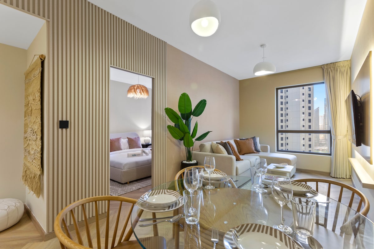 💫 Luxury renovated 1BR in JBR with Marina skyline views. 📍Prime Dubai Marina location: 1-min to JBR Beach, The Walk, The Beach, and moments from Marina Mall, Marina Walk, Pier 7, Metro & Tram. Easy access to Bluewaters Island, Ain Dubai, Palm Jumeirah & top Dubai attractions. Walking distance to Dubai’s iconic attractions. 🌲Perfect for holidays, beach trips & New Year fireworks stays. Fast Wi-Fi, full kitchen, pool & gym access. Book your spacious JBR beachfront escape today!