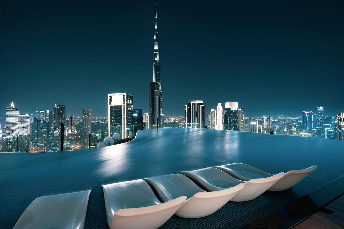 豪华2卧室,配备无边泳池,可欣赏哈利法塔全景