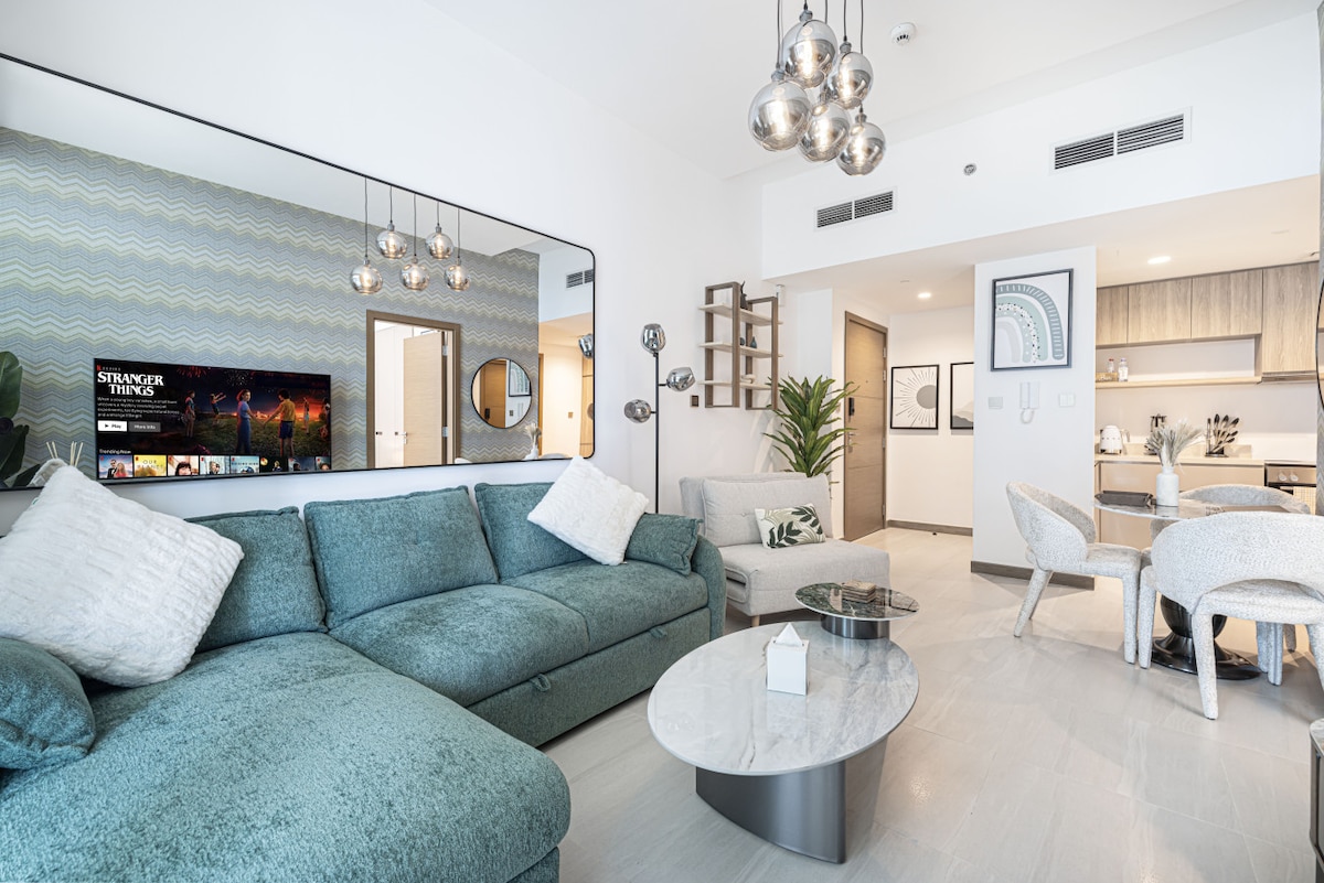 Our thoughtfully designed 1-Bedroom Family Apartment is located in the heart of Dubai's Palm Jumeirah, just opposite the famous Nakheel Mall. The apartment has a fully equipped kitchen and is situated within a fully-serviced 5-Star lifestyle hotel, the Andaz Dubai The Palm by Hyatt. The apartment provides you with access to a range of amenities, such as access to the community's beach and family pool overlooking Burj Al Arab, several restaurants and adults-only relaxation areas (Ora Spa).