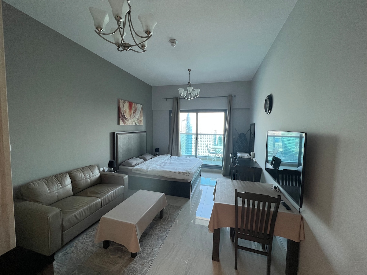 Enjoy city living in this bright and modern 1-bedroom apartment in JLT Cluster A, one of Dubai’s most central and vibrant communities. This fully furnished unit features a spacious bedroom, open-plan living area, fully equipped kitchen. Located just steps from the DMCC Metro Station, cafes, supermarkets, and Dubai Marina, this apartment is perfect for short/long stays, business trips, or remote work. ✅ Fast Wi-Fi | ✅ Pool & Gym Access | ✅ Prime Location