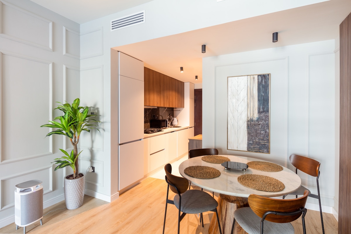 This stylish studio offers the perfect mix of comfort and convenience, just one minute from the metro. Its modern design, large windows with stunning city views, and cozy layout create an inviting space. Surrounded by top restaurants and shops, it’s ideal for both short and long stays. Thoughtfully furnished with elegant decor and essential amenities, it ensures a seamless and enjoyable urban living experience.
