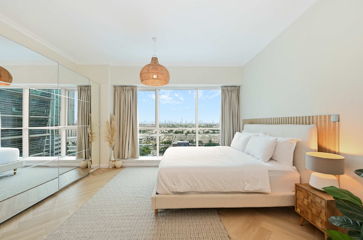 A stylish bohemian skyscraper home (up in the clouds) in the vibrant JLT area! Experience the Dubai Skyline from the 35th floor (full glass view), and unwind at the shared building pool, jacuzzi and sauna on the 39th floor, in an area full of award-winning restaurants and bars. Only 15 min by foot from Dubai Marina, and 2 min from the nearest Metro station, our bohemian oasis home provides a great starting point for exploring Dubai. We want to make your stay in Dubai a lifelong memory.