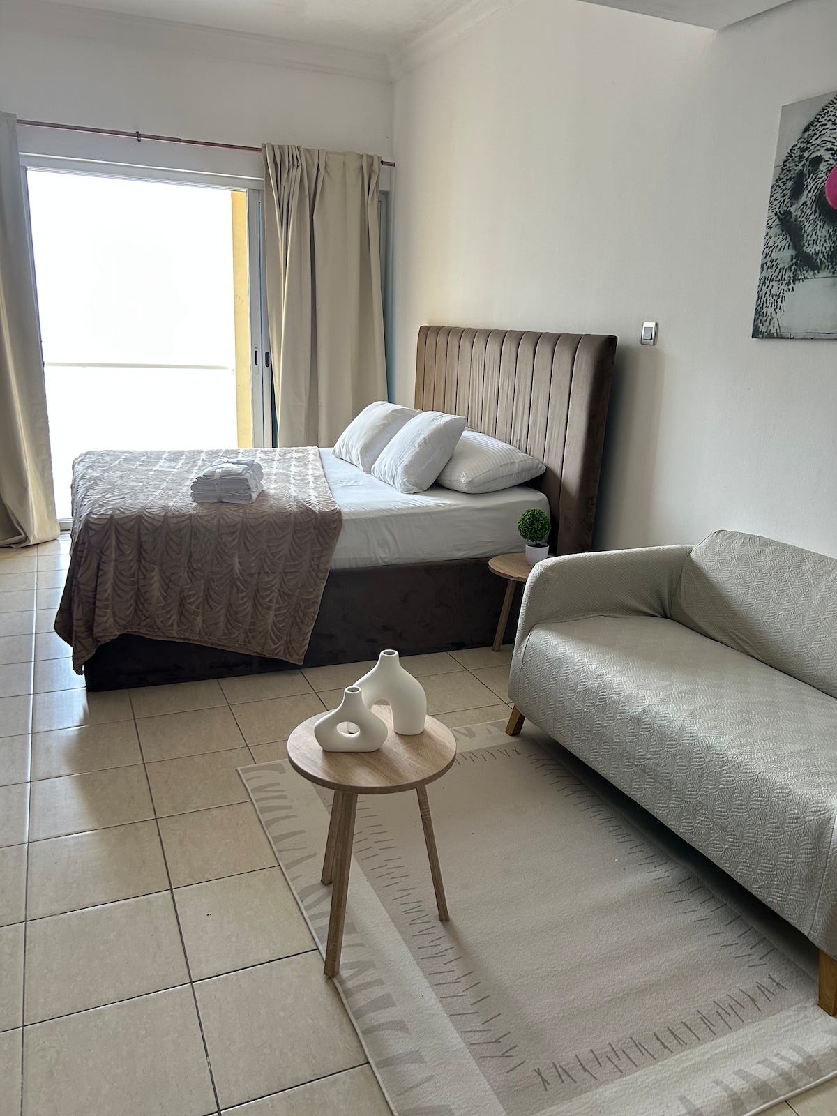 Experience elegance and comfort in our chic studio apartment with a large terrace in Downtown Dubai. Overlooking the Dubai Water Canal and within walking distance of Dubai Mall and Burj Khalifa, it’s the perfect base for your stay. Inside, enjoy a king-size bed, fully equipped kitchen, free WiFi, smart TV and complimentary parking. Whether traveling for business or leisure, our apartment blends style, comfort and location for an unforgettable Dubai experience.