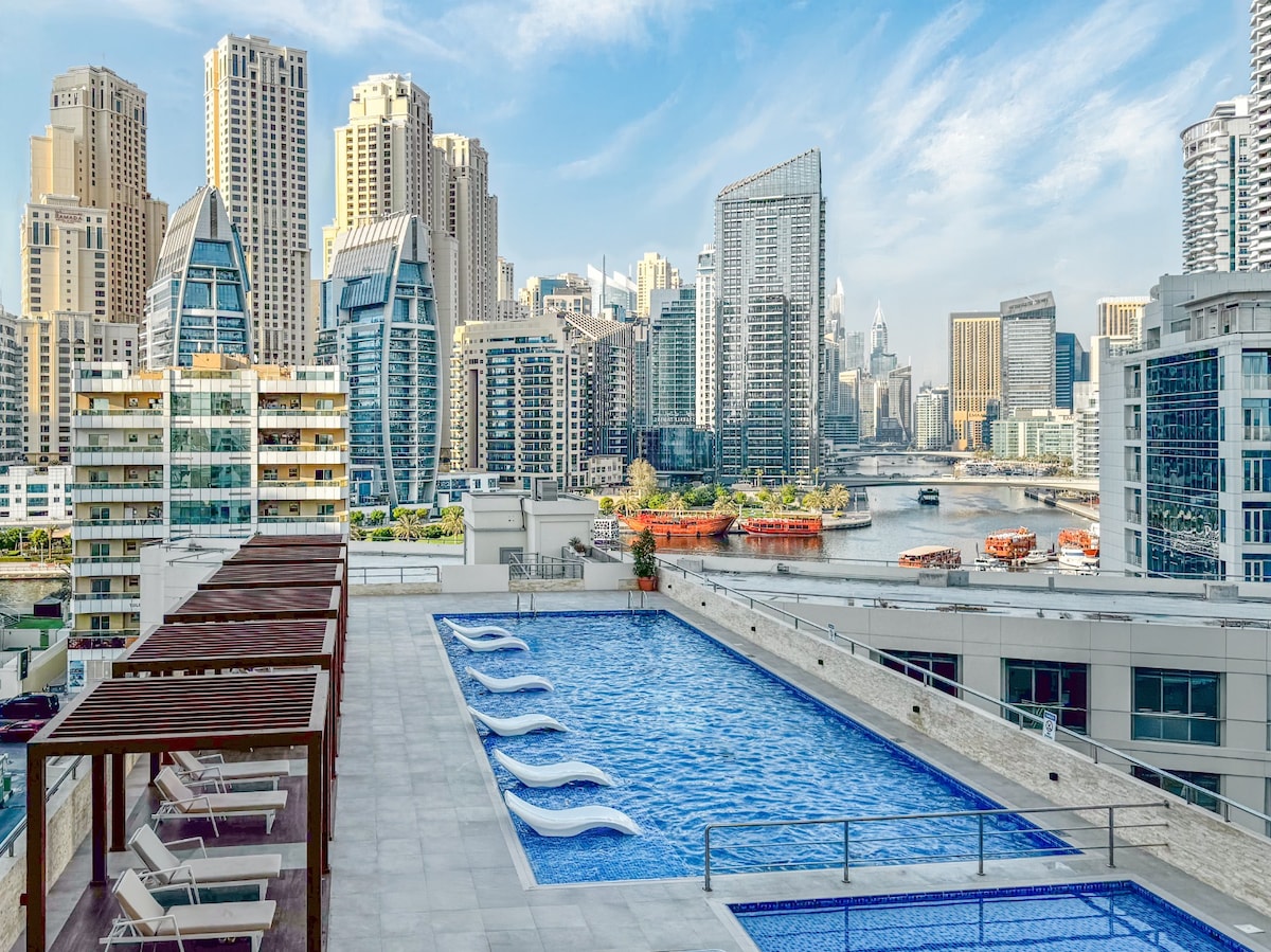 💫 Luxury renovated 1BR in JBR with Marina skyline views. 📍Prime Dubai Marina location: 1-min to JBR Beach, The Walk, The Beach, and moments from Marina Mall, Marina Walk, Pier 7, Metro & Tram. Easy access to Bluewaters Island, Ain Dubai, Palm Jumeirah & top Dubai attractions. Walking distance to Dubai’s iconic attractions. 🌲Perfect for holidays, beach trips & New Year fireworks stays. Fast Wi-Fi, full kitchen, pool & gym access. Book your spacious JBR beachfront escape today!