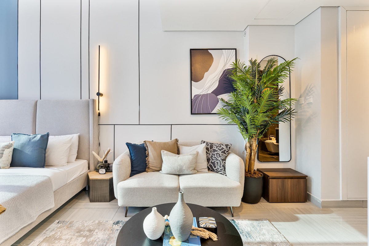 Welcome to CozyArtStudio in the heart of JVC! This studio apartment is designed to soothe your senses and help you relax. Located in Oxford 212, a brand-new luxury building. Offering the big pool area with lounge beds, fully equipped gym, outdoor cinema and a BBQ zone. Enjoy smart-home comfort, clean design, and thoughtful touches. Just a short walk from green parks, great restaurants and cozy cafes. Perfectly places between Downtown and Marina. Ideal for a peaceful and well-connected stay.