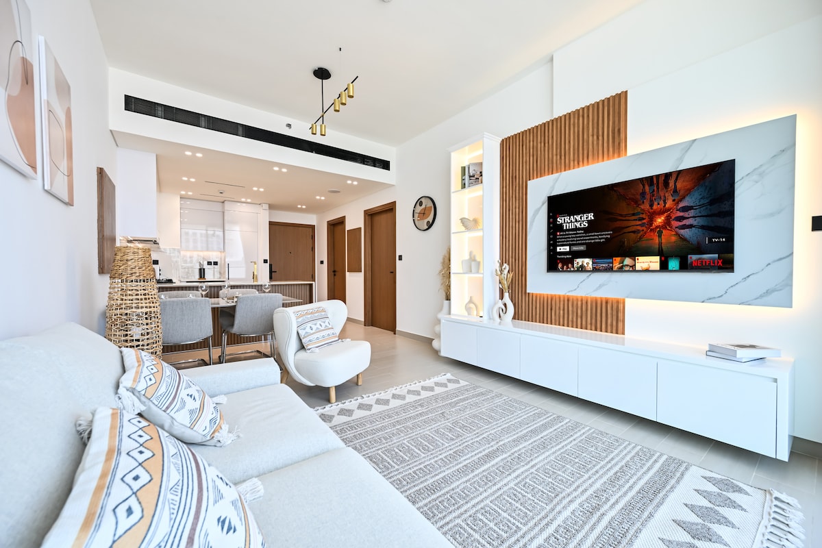 Welcome to your bright and modern 1-bedroom apartment in the heart of Jumeirah Village Circle – perfect for couples, solo travelers, business guests, and even small families. Thoughtfully furnished and filled with natural light, this home offers everything you need for a comfortable and relaxing stay. Whether you're visiting for a few days or planning a longer stay, you’ll feel right at home. Kick back and relax in this calm, stylish space.