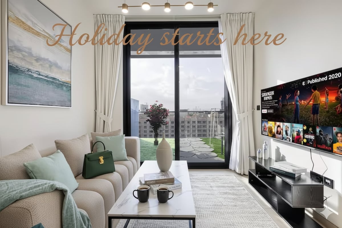 Welcome to your bright and modern 1-bedroom apartment in the heart of Jumeirah Village Circle – perfect for couples, solo travelers, business guests, and even small families. Thoughtfully furnished and filled with natural light, this home offers everything you need for a comfortable and relaxing stay. Whether you're visiting for a few days or planning a longer stay, you’ll feel right at home. Kick back and relax in this calm, stylish space.