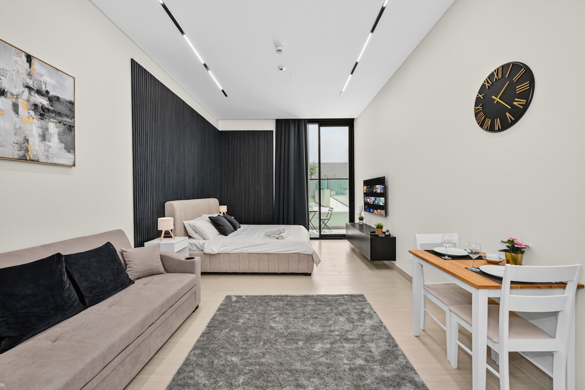 Experience comfort and convenience in our beautifully designed studio apartment on the 2nd floor, offering a charming pool and garden view. Centrally located in Jumeirah Village Circle (JVC), you're within walking distance of the Circle Mall, where you'll find a variety of restaurants and shops, gym and supermarkets, making it a perfect base for families or business travellers. Dubai Marina is approximately 15 km, taking about 15 minutes by car.