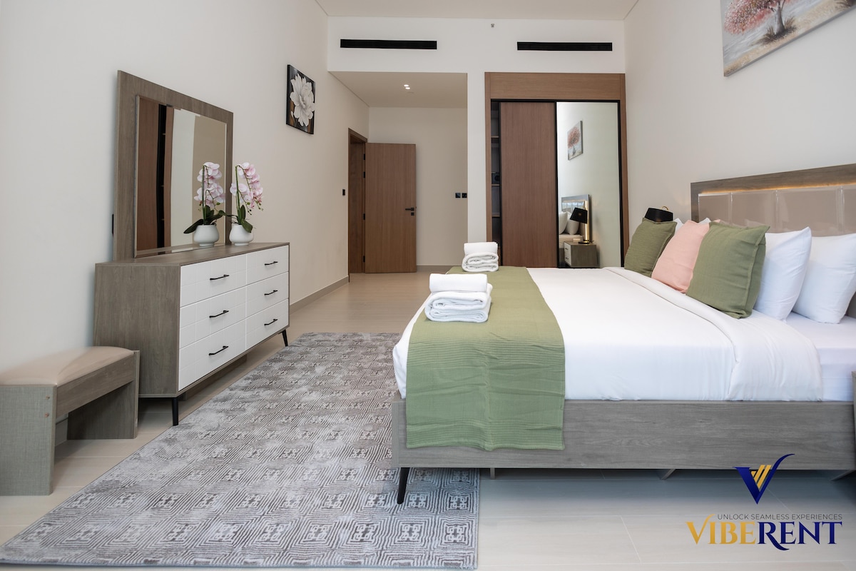 Location: Botanica by Myra, JVC (Jumeirah Village Circle) Nearby: - Minimarket in same building - Bus stop (2 min walk) - Metro station (~15 min drive) - Restaurants - Supermarket - Pharmacy - Parks & Jogging tracks - Mall of the Emirates (~15 mins) - Downtown Dubai (~20 mins) - Dubai Butterfly Garden - Dubai Cricket Stadium Available to all guests: - Gym - Pool - Assisted check-in / carry luggage - Playground - Free Airport Transfer (>14 nights) - Free dedicated parking - 24h Security onsite