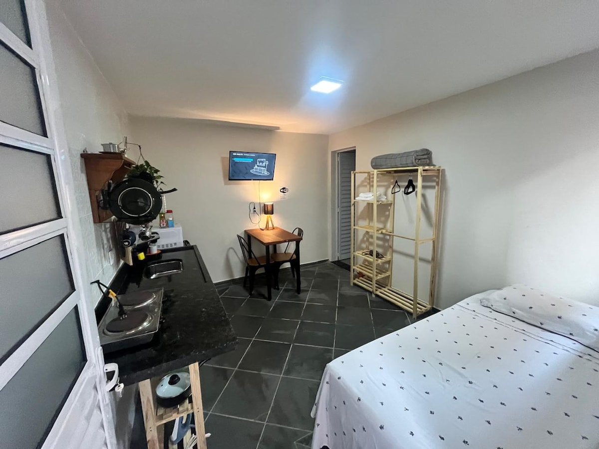 Mini Studio Completo em uma "Vilinha" Você terá todo o conforto com Cama de Casal Padrão, ventilador de teto, Banco com Estofado, Mesa de Jantar e Bancada para computador. Cozinha completa com fogão de Indução, frigobar e utensílios de cozinha Wi-fi e Smart TV 32 polegadas Próximo ao centro de Jundiaí e principais rodovias (Anhanguera e Bandeirantes) 300m da faculdade de Medicina de Jundiaí. Não temos garagem porém tem vagas na rua