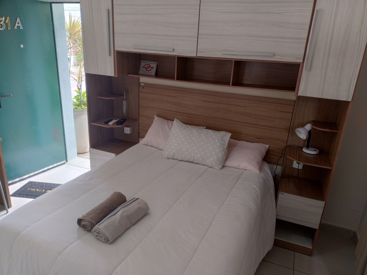 Studio privativo, aconchegante e funcional, pensada para quem busca conforto, praticidade e excelente custo-benefício. O espaço conta com quarto aconchegante, cozinha equipada e banheiro moderno integrados. Ideal para quem busca privacidade e conveniência em um ambiente acolhedor. Localizada em bairro seguro, com fácil acesso e tudo por perto, é a escolha ideal para quem valoriza conforto, organização e autonomia durante a estadia.