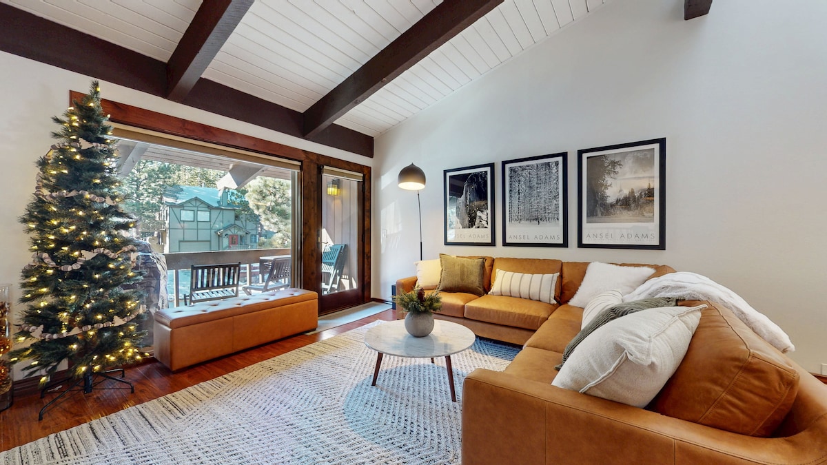 The Townhouse Art Gallery is large and comfortable, with three sleeping areas and three full bathrooms. Fully renovated, it features a luxury kitchen, views of the mountains, and high speed Wifi. It's filled with beautiful furniture, original paintings, and Persian rugs. It's located in a lovely, quiet spot surrounded by pines, near the center of Town. You'll have two parking spaces, but you're also super close to shuttles to all the lodges.