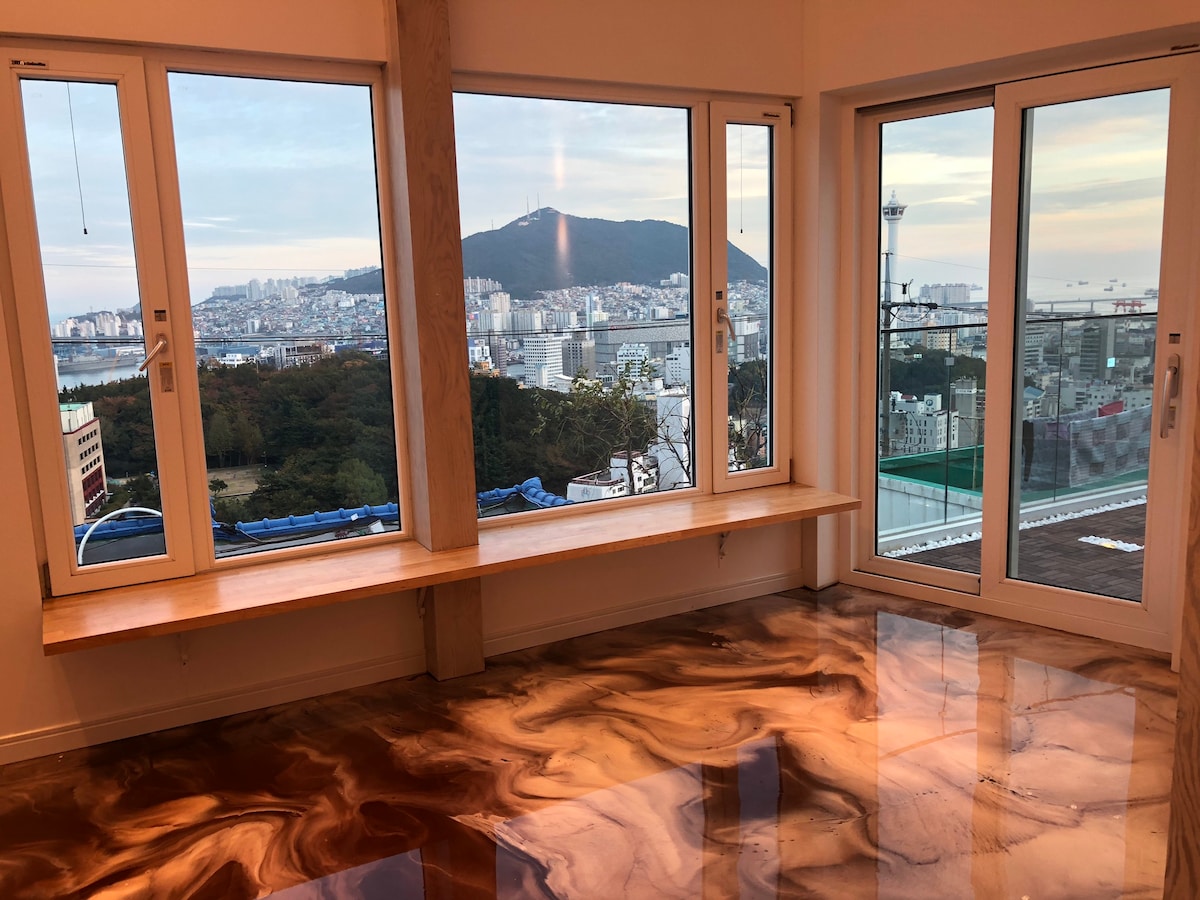 釜山之旅的最佳选择 海景露天浴池 2楼独立使用/免费使用按摩浴缸/投影仪/釜山站、白浪谷村