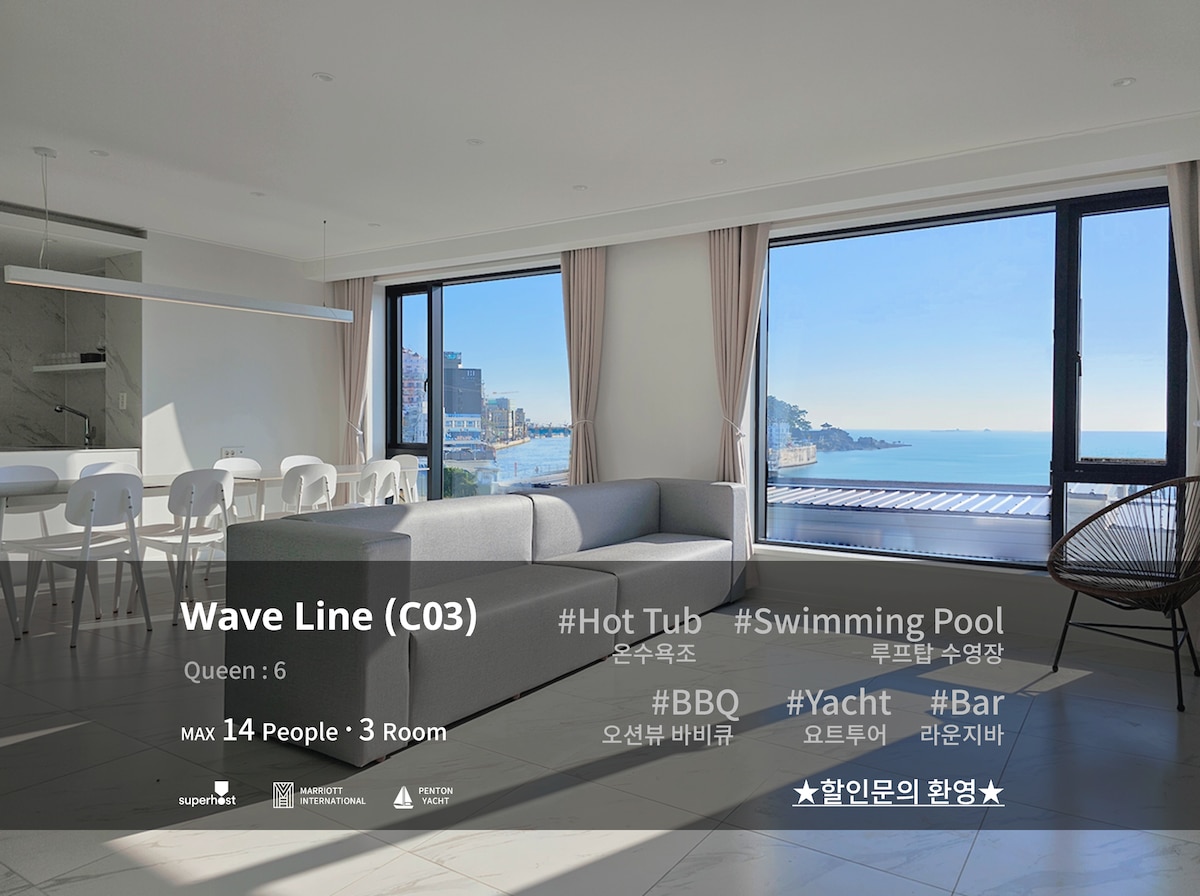 [Lawful] 해운대 펜트하우스 C03 (오션뷰/대형/실내온수욕조/프라이빗바베큐/수영장)