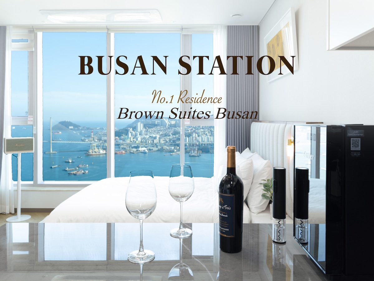 @stay8usanhang is a space overlooking Busan Port, thoughtfully designed to offer comfort and inspiration. Every detail, from music and fragrance to ambiance, interior, and bedding, has been carefully curated to enhance your stay. -Sky bridge connected to Busan Station (5-minute walk) -1 Super King bed, 3 Super Single beds Ocean-view bathtub (spa-ready) - Fully equipped / ideal for family travelers 50-inch large TV with Netflix, YouTube, OTT, and broadcast channels Bang & Olufsen speakers