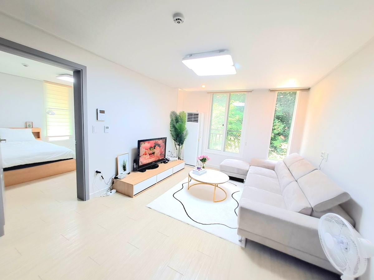 “지금, 여기서 행복하시길 바라는 진심”을 담아 청결하게 운영합니다. 짐보관 무료 서비스 제공합니다. [숙소 소개] - 숙소 1층 무료 주차 - 엘리베이터 있음 - 각 방 에어컨 총 3대 - 공원뷰의 도심속 힐링 숙소(+고요함) - 방2[침대4개(3Q+1S)]+넓은 거실+욕실1 - 고급 원목 2층 퀸침대 - “안방” 대형 스크린 빔프로젝터 - “거실” 스마트 TV - 6인용 대형 식탁 - 고급 화장대 + 스튤 2개 - 암막 커튼 - 아기자기한 홈스타일링 이쁜 포토존 - 반려견 동반 가능(추가금 발생) [ 교통편] - 대전역에서 1호선 탑승 1개 정거장 중앙로역 도착 후, 2번 출구 도보 7분 - 대전역 KTX에서 도보 15분 [물품] - 호텔 침구(고온 살균) - 수건(고온 살균) - 드라이기 2대 - 비데 - 샴푸/바디워시/컨디셔너/치약 - 온냉수 정수기, 전자렌지, 그릇, 냄비, 후라이팬 - 세탁기 [8인이상 숙박시] - 8인부터 퀸토퍼 침구 제공