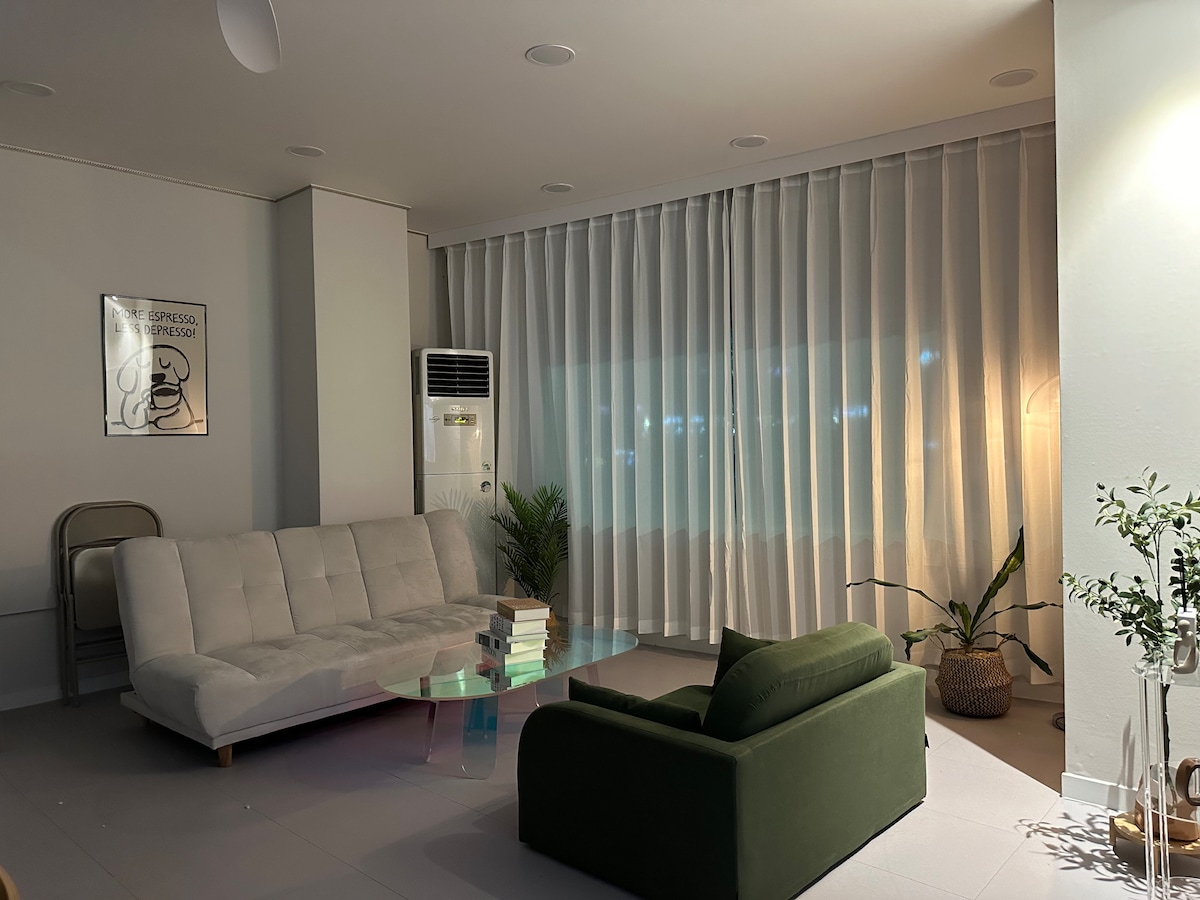 Sherry |宽敞的两居室|3张大床|距离Galleria/Lotte百货8分钟车程/大田市中心|免费停车