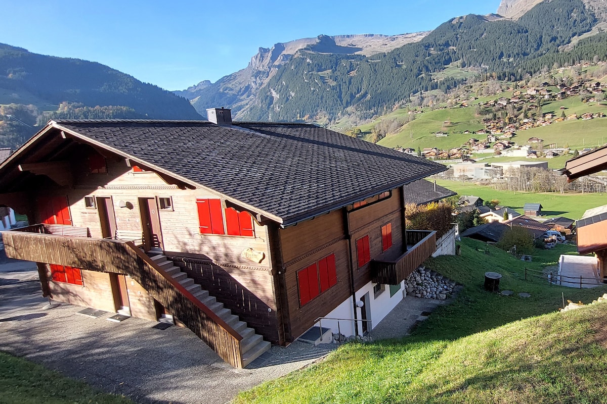 The chalet Adler is a single house where you will be on your own. The apartment is on 2 floors, 52m2. For the children is a cosy bed room available and in front of the house is a trampoline and a little river. Modern equipped, sunny and quiet location with view to mount Eiger and Wetterhorn. The apartment fits two to four people. Close to the cable cars and bus stop. All year access. Free WLAN. Pets are allowed.