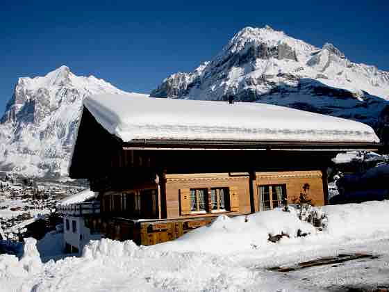 2-Zimmer-Gästehaus, 30 m2, mit grossem privaten Panorama-Sitzplatz mit herrlicher Sicht auf Eigernordwand und umliegende Berge. Sehr privat und keine Störung von anderen Gästen, da das ganze Gästehaus für Sie ist. Nichtraucherwohnung. Keine Haustiere. Nicht geeignet mit Kinder, keine Babyausstattung, kein Extrabett vorhanden. Zentrum Grindelwald und Bahnhof Grindelwald zu Fuss in 5 Minuten erreichbar, Bushaltestelle "Truffersbrunnen" 20 m, Linie Männlichenbahn.