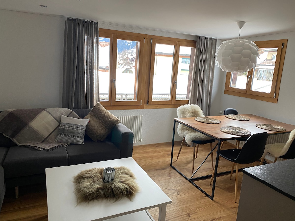 Beautiful new and sunny apt. with 2 1/2 room, 1 balcony with stunning view to the mountains including north face of Eiger, central located. There is also a storage room for ski and bicycle, a laundry, fully equipped kitchen (including raclette and fondue set), car park as well as supporting and friendly hosts.