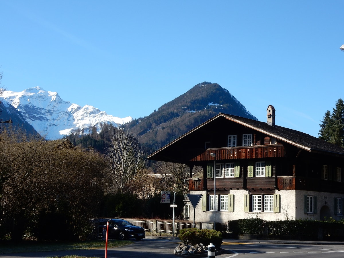 Welcome to the Jungfrau region, where you will enjoy the real Switzerland from our chalet apartment, the perfect base to explore. Our chalet lies against the backdrop of the majestic Eiger, Mönch and Jungfrau mountains. The train station offers good connections to the best sights of the region, including Interlaken, Lauterbrunnen and Jungfraujoch (Top of Europe), Luzern and Berne. Great location for skiing (only 20 min to the new Grindelwald Ski Terminal).