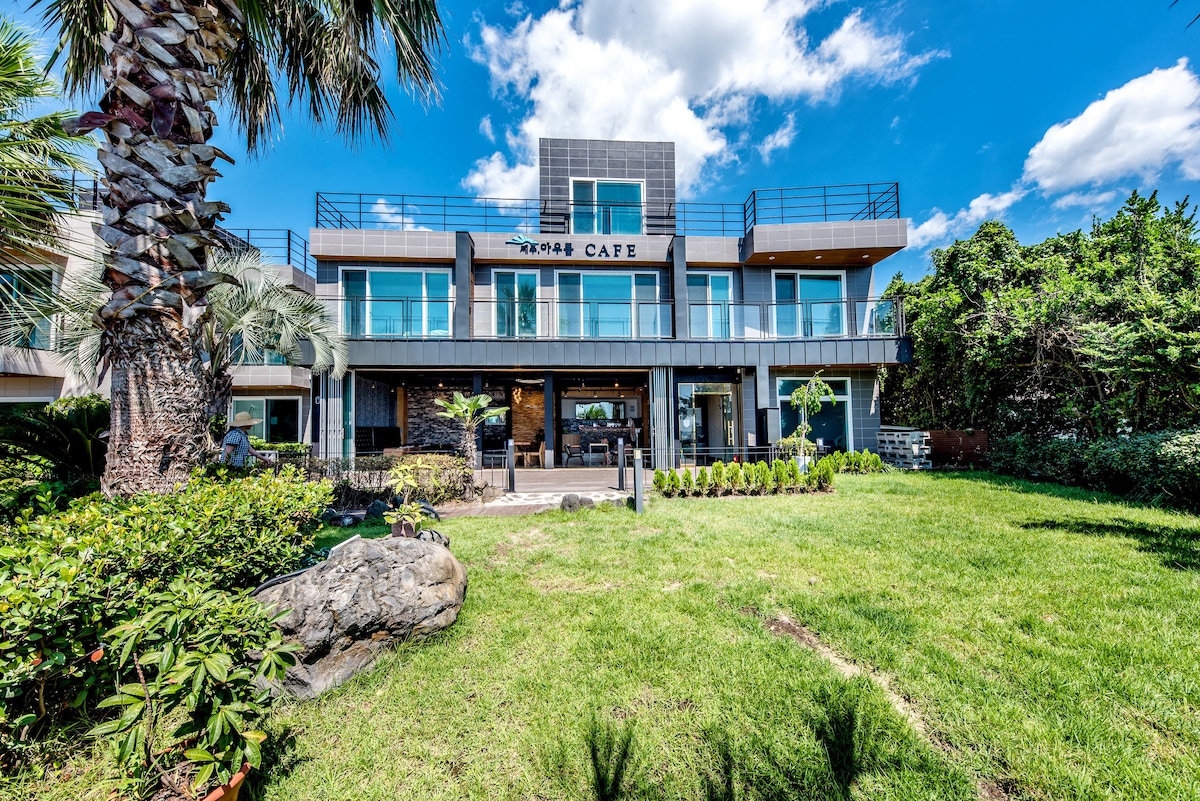 ※영유아를 포함하여 최대인원을 초과하는 예약은 수락되지 않습니다. 숙박 정원을 확인해주시기 바랍니다. ※ 에어비앤비 메세지 응대 가능 시간 - 오전 10시 ~ 오후 10시 -------------------------------------- 인공 잿빛 건물들 틈에서 빛을 잃어가는 꿈. 일상에서 벗어나 이국적인 산방산과 고요한 사계 바다를 통해 과거를 정리하고, 내일을 꿈꾸는 기회를 얻는 공간이고 싶습니다. 네추럴한 디자인과 벽 2면을 통유리로 시공하여 시원한 개방감을 주었으며, 커텐 및 블 라 인 더 대신 특급 호텔 등에서 사용하는 루브셔터를 사용, 깨끗하고 고급스런 객실을 연출하였습니다. 소중한 추억을 만드는 공간, 그 이상의 가치를 제공 하려합니다.