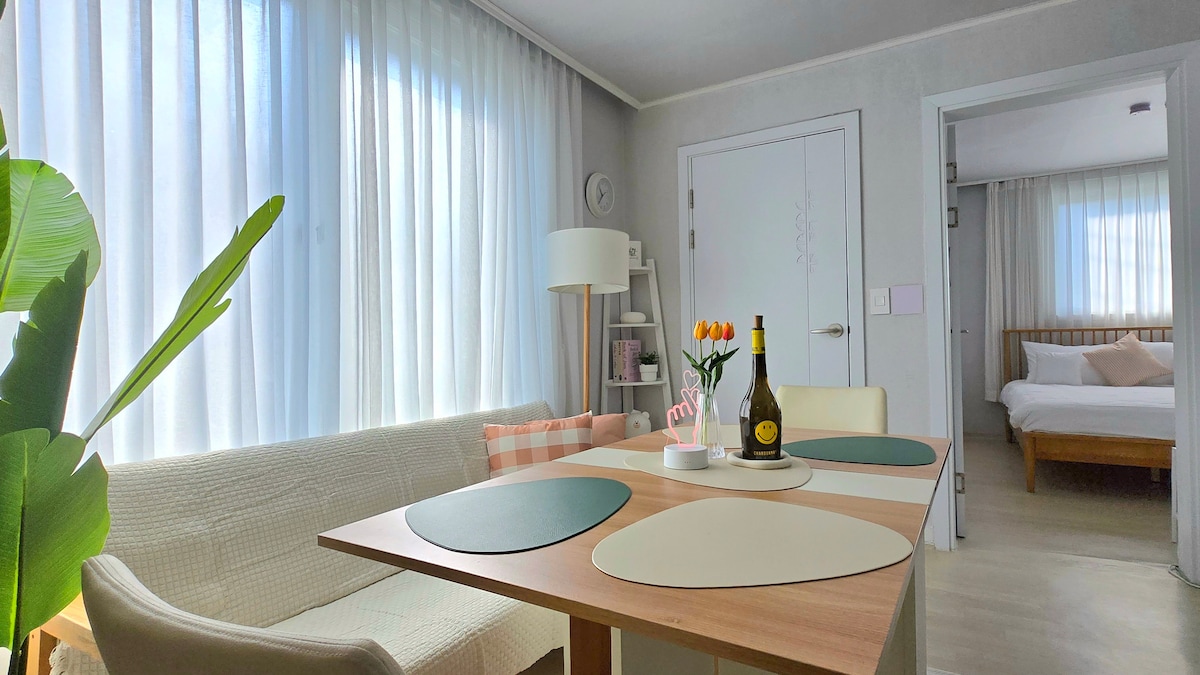 스테이 온담(Stay Ondam)은 영어 응대가 가능한 호스트가 운영하는 숙소로 ‘따뜻한 이야기가 머무는 공간’이라는 의미를 담고 있습니다. 한국식 주택을 리모델링해 따뜻한 우드 인테리어로 완성했으며, 게스트가 쾌적하게 머무를 수 있도록 세심하게 관리하고 있습니다. 23평/76m² 규모의 숙소는 침실 3개, 퀸사이즈 침대 4개, 토퍼 1개와 거실과 분리된 주방으로 최대 10명의 인원이 편안하게 이용할 수 있습니다. 청결과 위생을 우선으로 생각하여 모든 침구류는 전문 세탁 업체를 통해 정기적으로 관리되며, 숙소는 철저한 청소를 거쳐 최상의 컨디션을 유지합니다. 도심 중심부에 위치한 숙소는 역과 매우 가까워 공항 및 주요 명소로 이동이 편리합니다. 대형 마트와 쇼핑몰, 레스토랑, 카페 등 다양한 편의시설이 인접해 있어 장기 숙박에도 적합합니다. 또한, 현지 분위기를 느낄 수 있는 전통시장과 밤에 더욱 활기찬 로컬 야시장까지 낮과 밤 모두 다채로운 경험을 즐기실 수 있습니다.