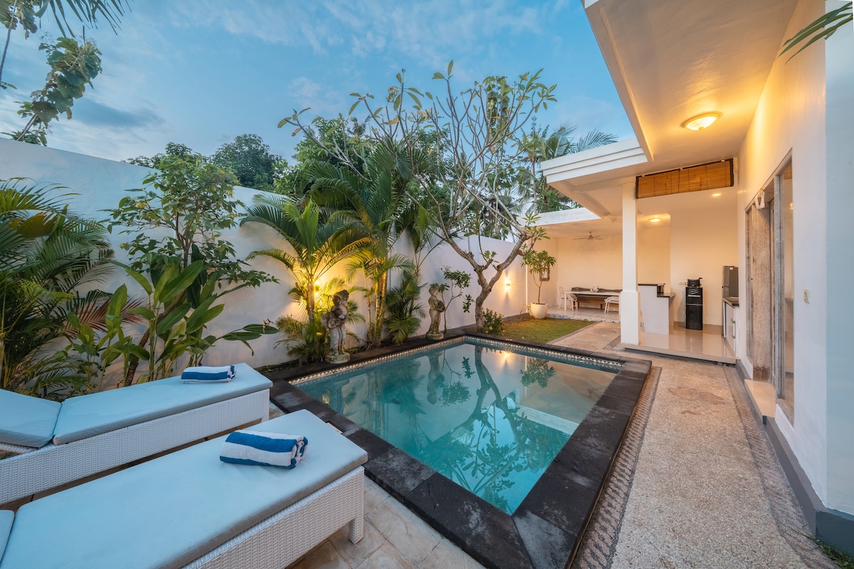 Villa Kasih is a private pool villa tucked in a quiet laneway in the heart of Jungutbatu — just steps from the beach, surf, restaurants, shops, and yoga. Located in a flat, easy-access area with no hills or stairs to climb. Enjoy free breakfast, a full kitchen, and daily cleaning. The villa’s relaxed, rustic style is a rare find on the island — ideal for first timers seeking a laid-back and comfortable island stay.