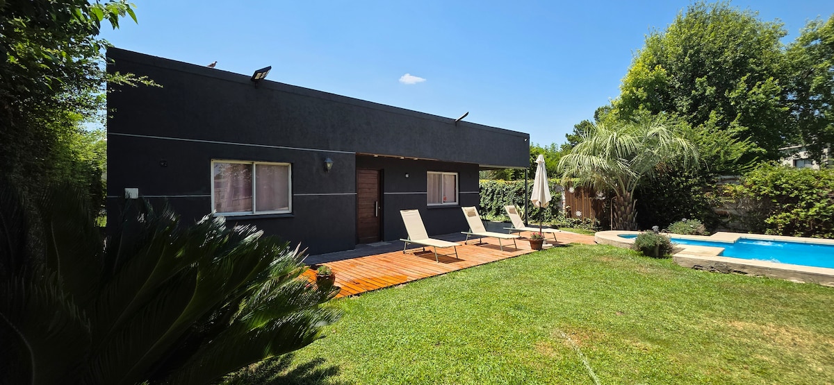 Casa quinta con pileta y amplio parque. Ideal para descansar y disfrutar de una estadía relajada en esta luminosa casa con pileta, amplio jardín y espacios ideales para compartir con familia o amigos. Posibilidad de reservar para eventos pequeños (20 personas).