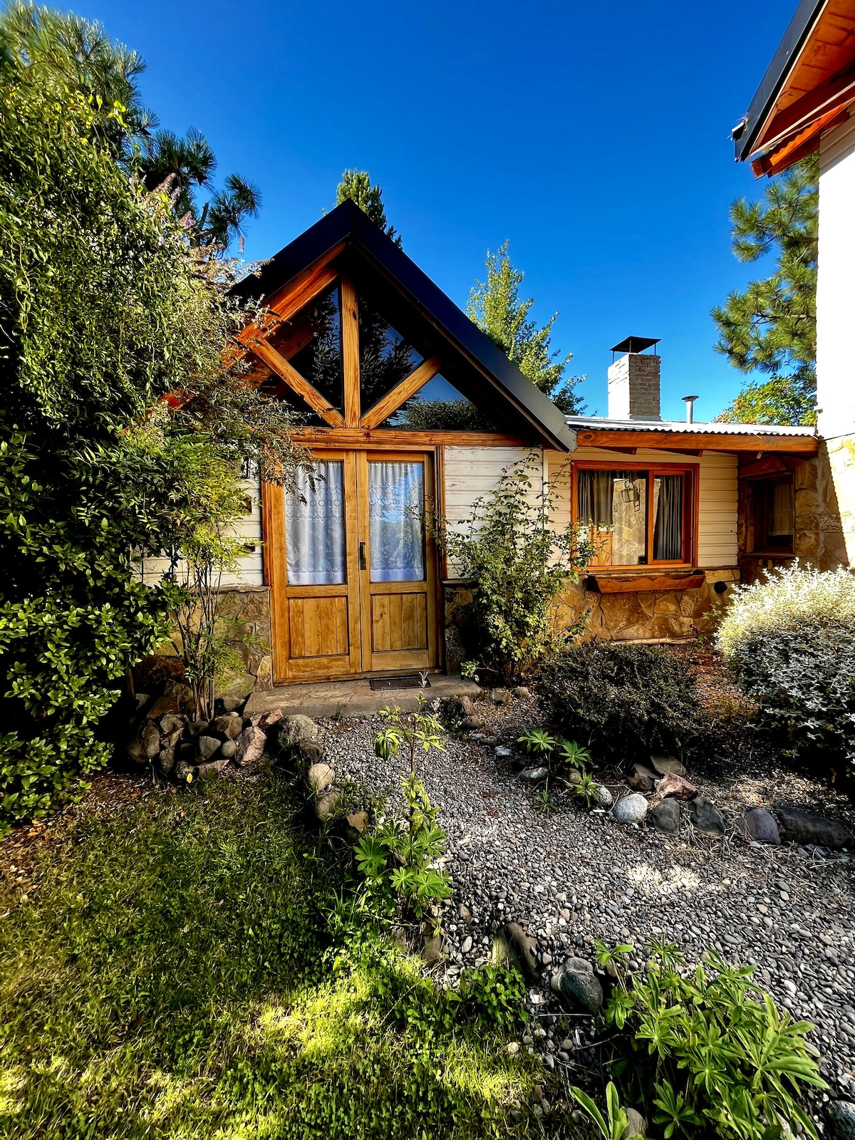 Cálida Cabaña de madera rodeada de naturaleza, con espacio verde para asados, a 3 minutos del centro. Se combina lo simple y el buen gusto. Capacidad hasta 5 pasajeros. Vecina a Casa Los Robles, apta hasta 8 pasajeros, ideal combinación - CASA Y CABAÑA LOS ROBLES - para vacacionar con amigos y familias numerosas. (ver publicación "casa Los Robles" en air b&b ) Jardín aterrazado, acceso por escaleras.Estacionamiento frente a la Cabaña.