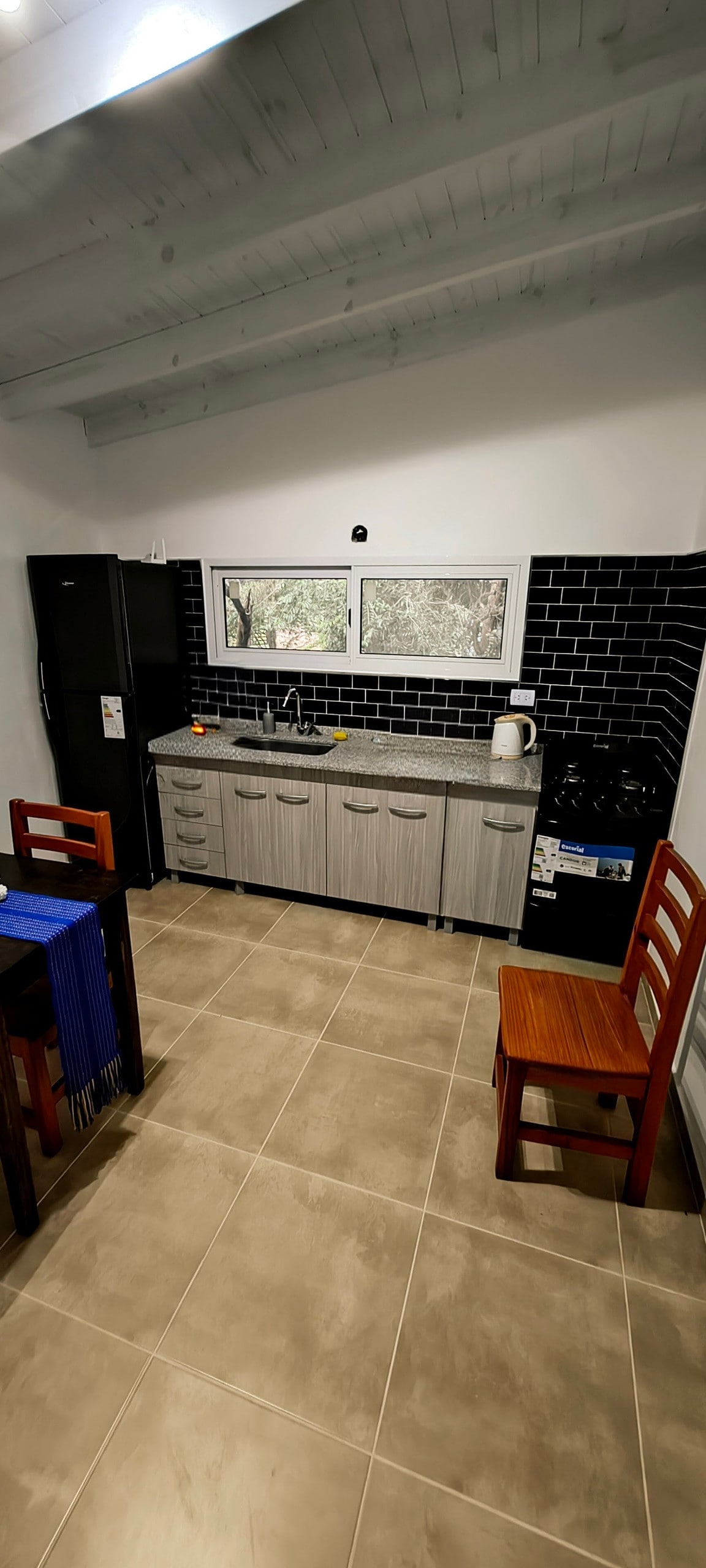 El departamento esta recién terminado, consta de una cocina completamente equipada, baño, habitación y balcón con vista a las sierras, amplio patio trasero, parrilla, desayuno, almuerzo y cena opcional. La casa estilo campo se encuentra a a pocas cuadras del centro en una zona muy tranquila