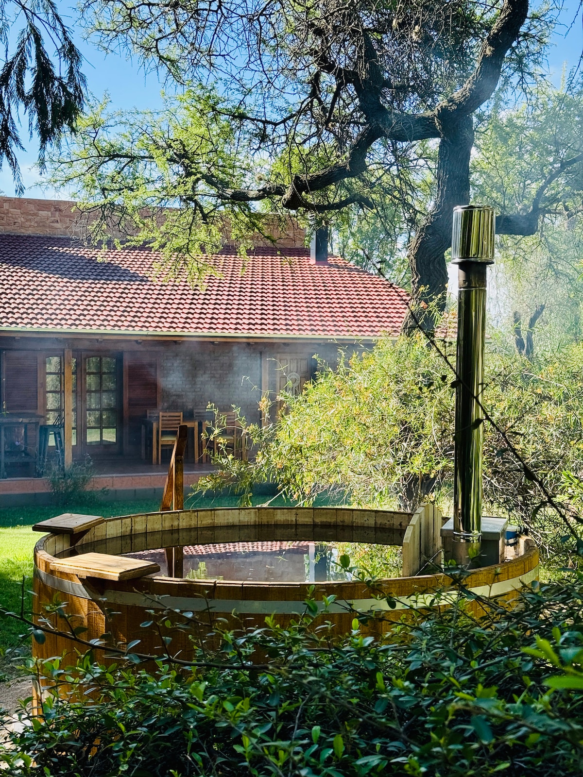 Cabaña al pie de las sierras con bajada propia al arroyo. Inmerso en el monte nativo rodeado de naturaleza. En el verano su mini piscina con vista a los cerros, su galería con asador y su gran jardín serán tu refugio. La salamandra te dará calor en invierno mientras disfrutas de la vista a los cerros nevados . La casita está pensada para que la privacidad sea lo más importante.