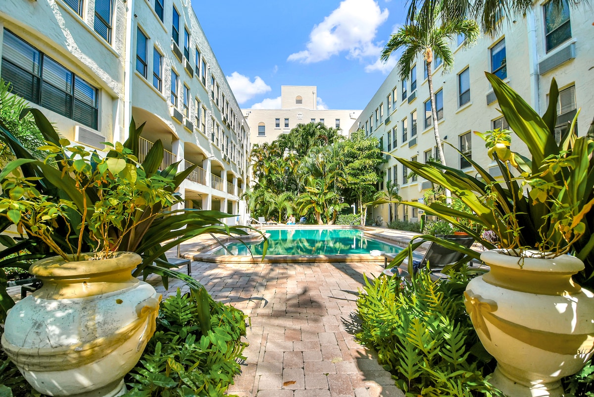 🌴🏖Beautiful remodeled Palm beach island garden/pool view 275 sf. studio available in the historic Palm Beach Hotel 2.5 blocks to the Beach. Includes a parking pass for free parking nearby. Newly furnished with large comfortable King Simmons Beauty Rest Platinum bed kitchen and a great view of a garden and partial view of the pool! Dining, bars & beach within 2 blocks and a Publix across the street, beautiful pool on-site. Parking passes are included with your stay🏖🌴