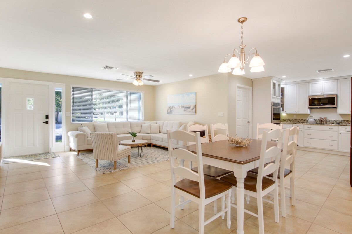 Bright, newly furnished home in Jupiter, FL with a saltwater pool, spacious patio, and large backyard. Relax in luxurious bedding, watch movies on Smart TVs in every room, and unwind in comfort. Explore aqua-blue beaches, fantastic restaurants, and a laid-back atmosphere. Explore aqua-blue beaches, fantastic restaurants, and laid-back vibes. Enjoy activities like paddle boarding, homemade ice cream, and sunny weather year-round. Perfect for family getaways or a relaxing retreat!