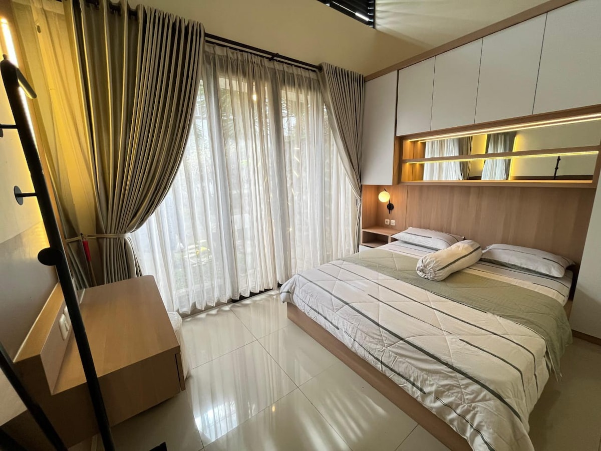 This located is on a strategic area, around 1,7 km from Jatim Park 1 2 and Eco Green Park; 3,5 km from Jatim Park 3; 2,5 km from Museum Angkut and BNS; 500 m from Pasar Besar Batu with quiet neighbourhood and natural scenery. It is also provided with kitchen equipment, refrigerator, TV, wifi, iron, water heater in bathroom, carport and extra bed