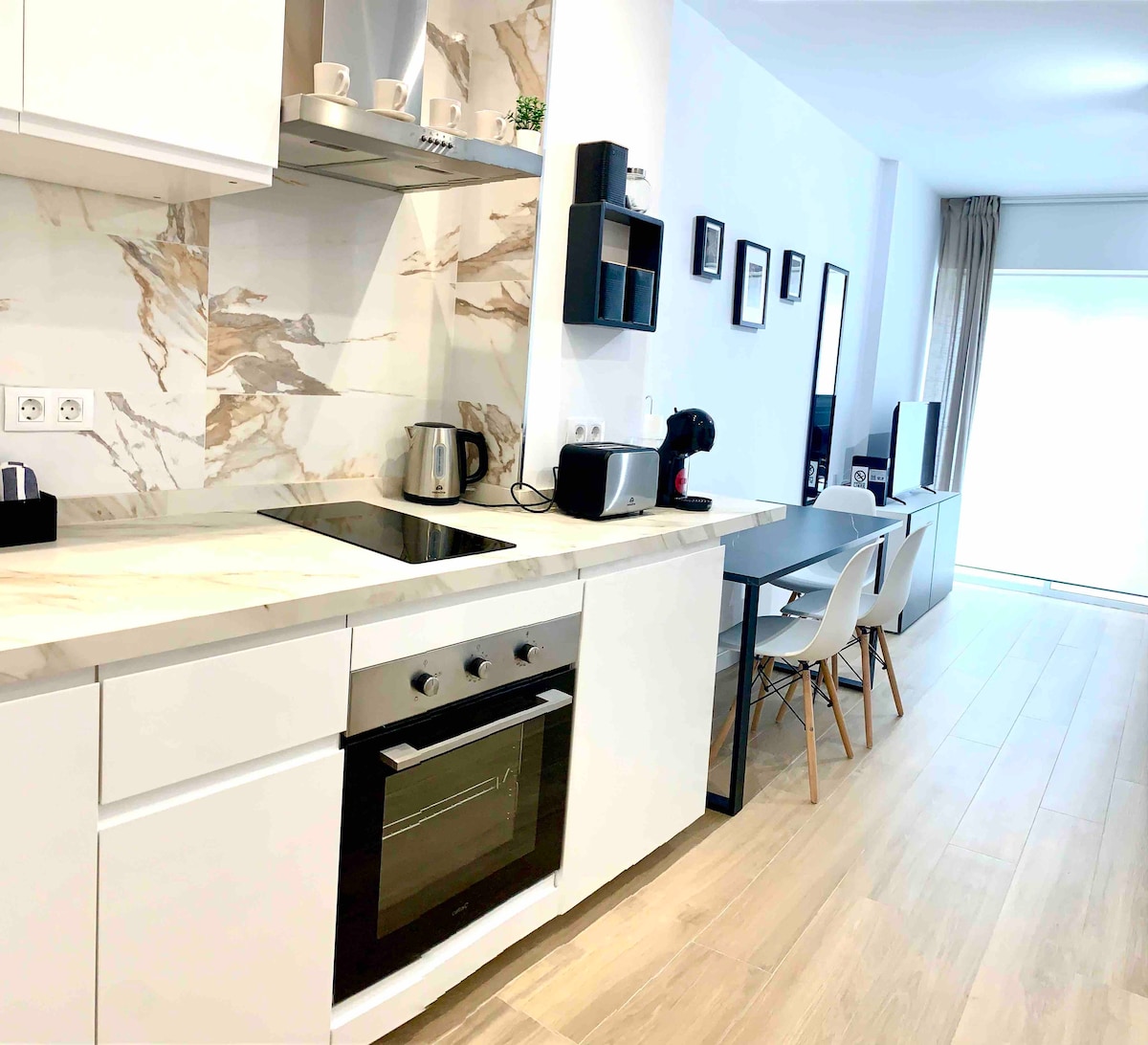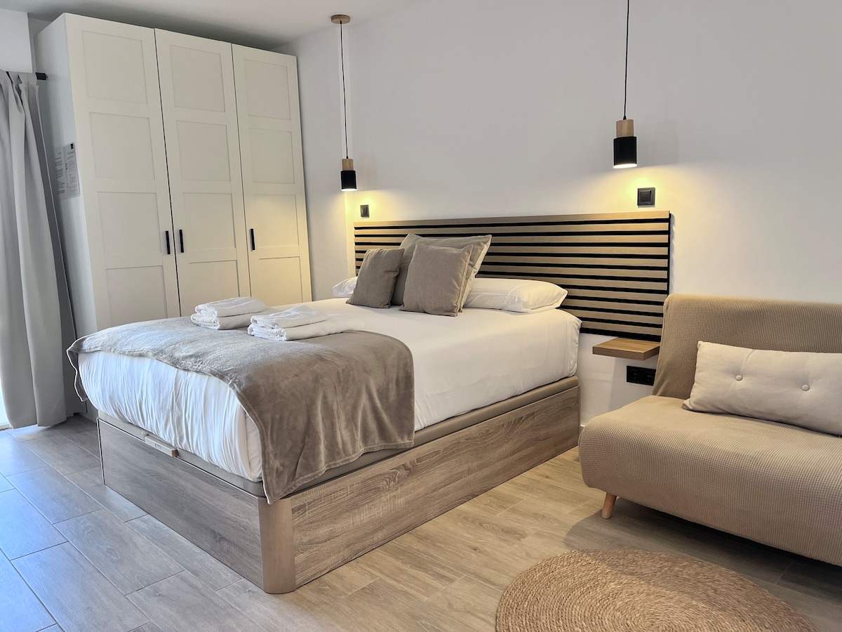 Newly renovated one-bedroom apartment with a Queen Size Bed, air conditioning and 600 MB internet connection. Located on the 3rd floor of a building with 3 elevators. Pool open from June to September. Beautiful sea and mountain views. Fully equipped kitchen with dishwasher, microwave oven, Nespresso Coffee Maker, water boiler, toaster, and all the utensils needed to cook. You can find an iron and hairdryer, wifi (optic fiber with 600 MB speed) and Smart TV with Movistar Channels.