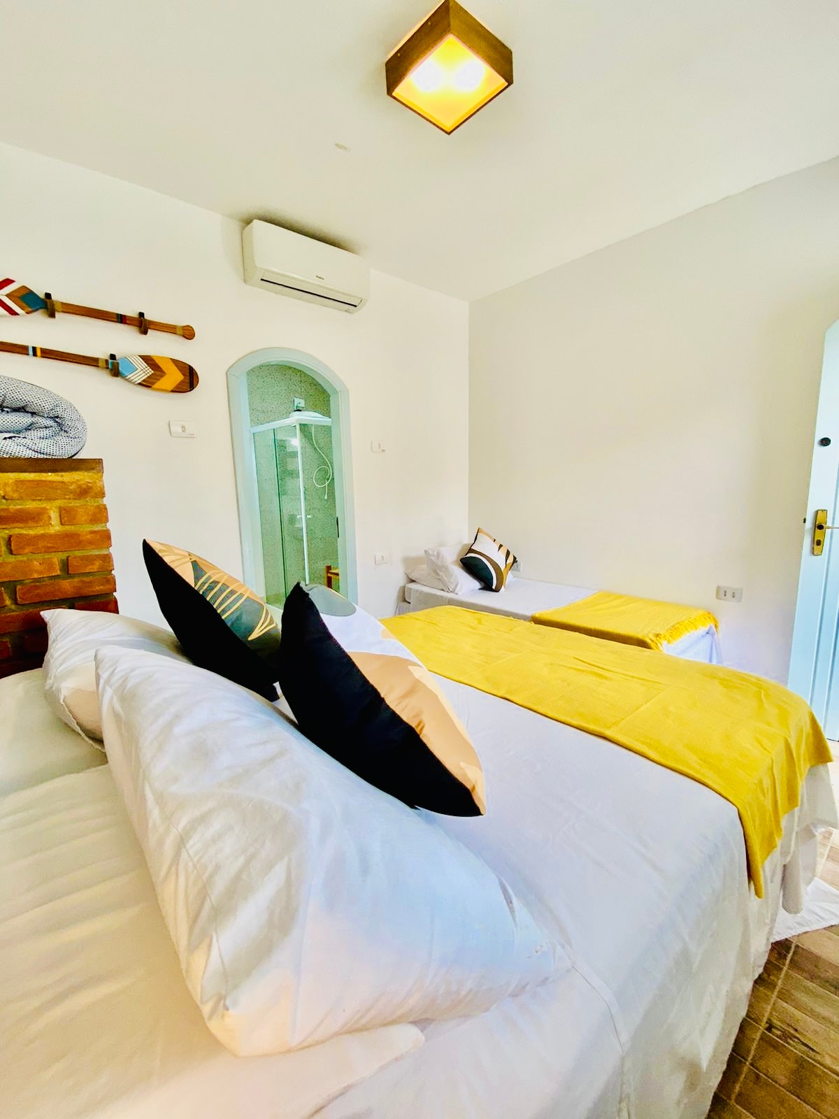 O Quarto Luxo é equipado com cama Queen Size, Smart TV 32″, ar-condicionado, frigobar, banheiro privativo, amenities e roupa de cama e banho. Acomoda 3 pessoas. Os quartos possuem rede de descanso e foram decorados com muito capricho para trazer todo aconchego.